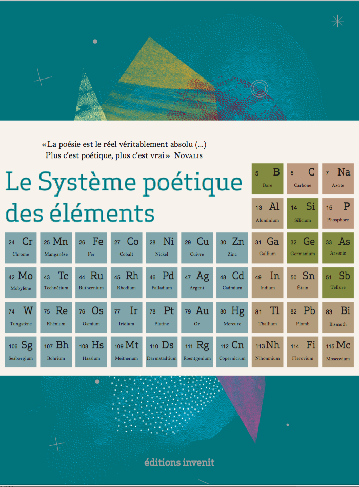 Réuni.e.s au sein du Laboratoire Novalis aux fins de recherches chimicopoétiques, 118 poète.sse.s, français.es et belges, se sont toutes et tous emparé.e.s d’un des 118 éléments du tableau périodique de Mendeleïev. Il.Elle.s donnent à lire ici le produit de leurs recherches. Selon un protocole d’organisation et pour correspondre au découpage du tableau en 10 familles tel qu’établi à ce jour, 10 sous-directrices ou sous-directeurs ont été choisi.e.s par Dominique Tourte. Chacun.e a constitué une famille d’auteur.e.s. À l’image de notre monde naturel et de la variété de ses briques élémentaires qu’en sont les atomes, leurs fragments poétiques forment un univers en lui-même. Répondant à l’esprit de Novalis, ils dessinent une tentative de « romantisation » du monde par laquelle mots et matière se répondent selon de secrètes lois de correspondance. Avec ces textes se rétablit un lien analogique entre le langage et les éléments. Quelque chose en effet les rassemble, quelque chose qui est resté de l’âge d’or ; c’est le rythme, cette liberté du rythme qui depuis le début des temps meut les choses comme les paroles ; rythme et liberté que tentent de saisir et de suivre minéralistique et grammatologie chez Novalis.