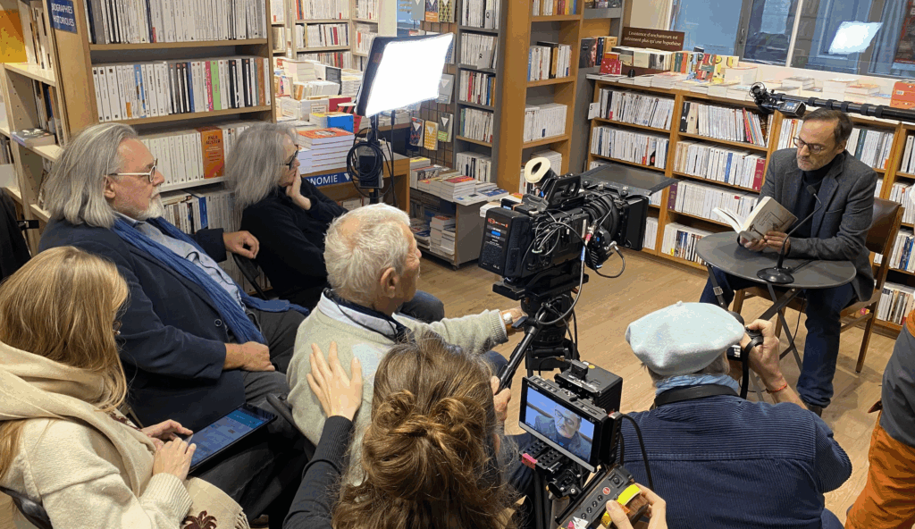 Jean Jauniaux, le 5 octobre 2025, recension écrite à la volée dans les travées de la Librairie Tropismes, au cinquième jour du tournage de L’ivresse des livres, un court métrage adapté de l’ouvrage éponyme de Jean Jauniaux, réédité chez MEO, film réalisé par Philippe Reypens.